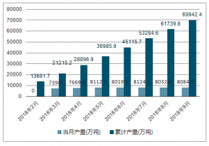 2018年2-9月中國粗鋼各月當月產(chǎn)量及累計產(chǎn)量走勢
