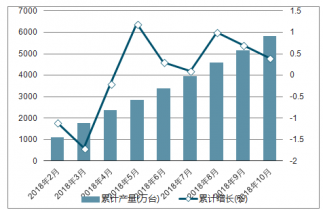 2018年2-10月中國(guó)家用洗衣機(jī)各月累計(jì)產(chǎn)量及同比增長(zhǎng)走勢(shì)