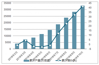 2018年2-10月中國(guó)移動(dòng)通信基站設(shè)備各月累計(jì)產(chǎn)量及同比增長(zhǎng)走勢(shì)