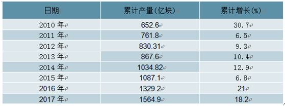 2010-2018年中國(guó)集成電路行業(yè)產(chǎn)量及增長(zhǎng)走勢(shì)