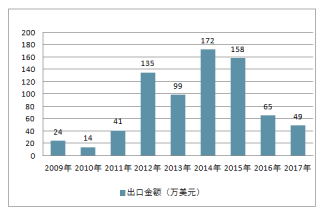 2009-2018年中國木薯淀粉出口金額走勢(shì)