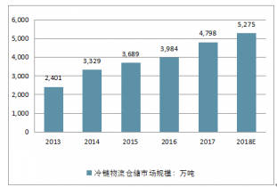 2013-2018年中國(guó)冷鏈物流倉(cāng)儲(chǔ)市場(chǎng)規(guī)模走勢(shì)