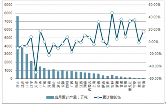 2018年4月全國(guó)各省市鋼材當(dāng)月產(chǎn)量及增長(zhǎng)