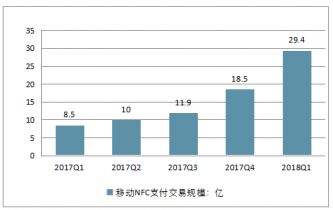 2017Q1-2018Q1中國移動NFC支付交易規(guī)模走勢