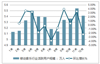 2018年1-12月移動音樂行業活躍用戶規模