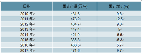 2010-2018年中國(guó)鉛產(chǎn)量走勢(shì)