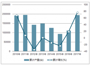 2010-2018年中國(guó)挖掘機(jī)產(chǎn)量及同比增長(zhǎng)走勢(shì)