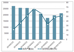 2018年2-10月中國挖掘機各月當月產(chǎn)量及同比增長走勢