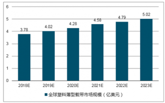 預計2019年至2023年全球塑料薄型載帶市場規模有望從3.52億美元增長至5.02億美元,市場規模穩定增長。