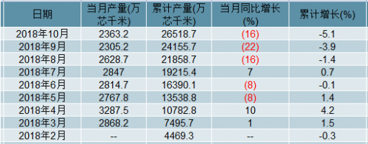 2018年3-10月中國光纜各月當月產量及累計產量走勢