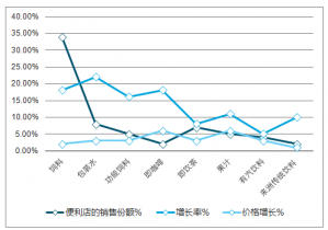 中國(guó)便利店銷售份額及價(jià)格增長(zhǎng)率走勢(shì)