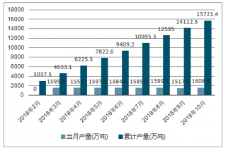 2018年3-10月中國原油各月當(dāng)月產(chǎn)量及累計產(chǎn)量走勢