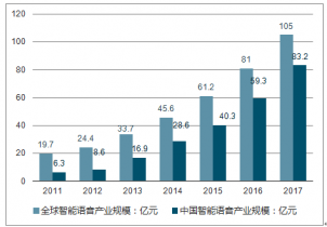 全球和中國智能語音產(chǎn)業(yè)規(guī)模對比