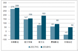 1H17 -1H18電視劇制作公司凈利潤(rùn)情況(單位:百萬元)