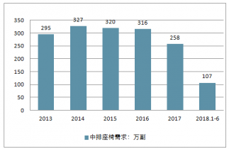 213-2018年1-6月中國(guó)乘用車中排座椅需求情況