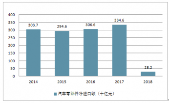 中國(guó)汽車零部件凈進(jìn)口額(十億元)