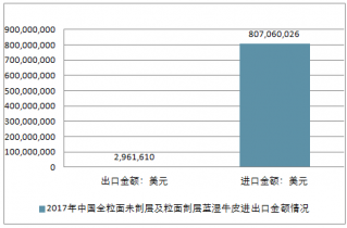 2018年中國全粒面未剖層及粒面剖層藍濕牛皮進出口金額情況
