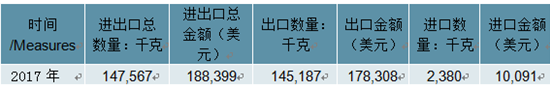 2018年中國其他牛濕革進出口總量147567千克,進出口總金額188399美元。