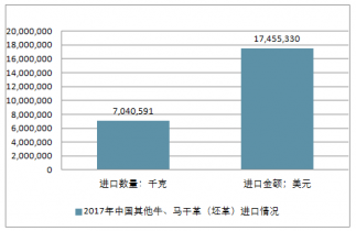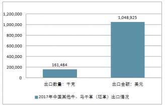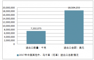 2018年中國其他牛、馬干革(坯革)進出口總量7,202,075千克,進出口總金額18,504,255美元。