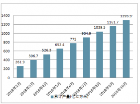 2018年2-10月中國天然氣各月累計產(chǎn)量走勢