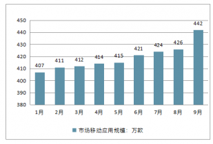 2018年1-9月中國市場移動應(yīng)用規(guī)模走勢
