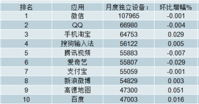 2018年10月移動應(yīng)用月度獨(dú)立設(shè)備排行榜TOP10