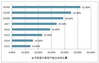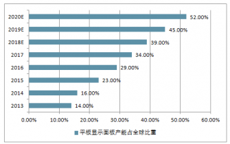 2013-2020年中國平板顯示面板產能占全球比重情況