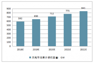 風電作為現(xiàn)階段發(fā)展最快的可再生能源之一,在全球電力生產結構中的占比正在逐年上升,擁有廣闊的發(fā)展前景。據預測,未來全球風電累計裝機容量仍將以每年9.5%左右的速度保持穩(wěn)定增長,并將在2022年達到841GW;另外,未來全球風電新增裝機容量也將繼續(xù)保持穩(wěn)定增長,預計每年新增裝機容量都能達到50GW上。海上風電具有發(fā)電量高、單機裝機容量大、機組運行穩(wěn)定、適合大規(guī)模開發(fā)等優(yōu)點,成為全球電場建設的新趨勢。據預測,全球海上風電總裝機容量有望在2030年達到100GW。