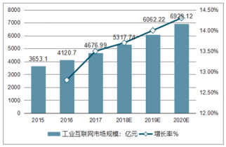 2018年中國(guó)工業(yè)互聯(lián)網(wǎng)市場(chǎng)規(guī)模達(dá)到4676.99億元,增長(zhǎng)率為13.5%;隨著產(chǎn)業(yè)政策逐漸落點(diǎn),市場(chǎng)空間將有望加速,預(yù)計(jì)2020年中國(guó)工業(yè)互聯(lián)網(wǎng)市場(chǎng)規(guī)模可達(dá)6929.12億元。