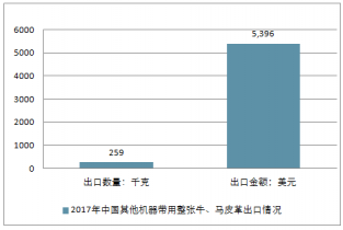 2017年中國其他機器帶用整張牛、馬皮革出口情況