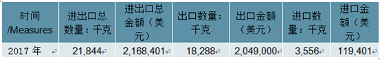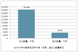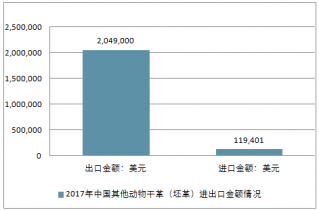 2017年中國其他動物干革(坯革)進出口總量21,844千克,進出口總金額2,168,401美元。