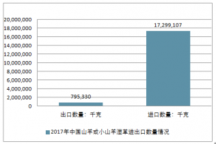 2017年中國(guó)山羊或小山羊濕革進(jìn)出口數(shù)量情況