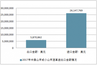 2017年中國(guó)山羊或小山羊濕革進(jìn)出口金額情況