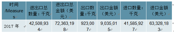 2017年中國經(jīng)鞣制的其他不帶毛動物皮及其坯革進出口總量42,508,934千克,進出口總金額72,363,198美元。