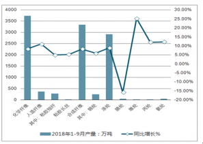 2018年1~9月化纖產量及同比增長