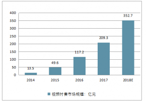 2014-2018年中國視頻付費市場規模走勢