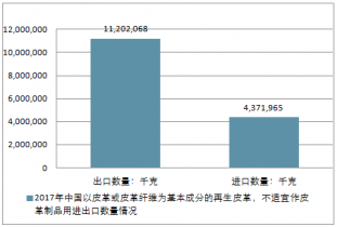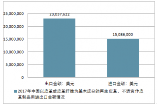 2017年中國以皮革或皮革纖維為基本成分的再生皮革,不適宜作皮革制品用進(jìn)出口總量15,574,033千克,進(jìn)出口總金額38,123,622美元。