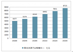 2018-2023年中國再生資源行業(yè)銷售收入預測(單位:億元)
