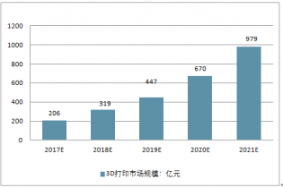 中國(guó)3D打印市場(chǎng)規(guī)模預(yù)測(cè)