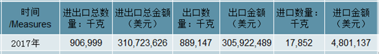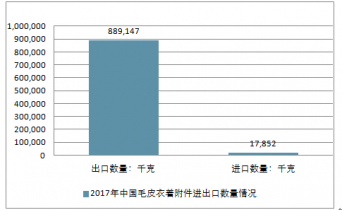 2017年中國毛皮衣著附件進出口總量906,999千克,進出口總金額310,723,626美元。