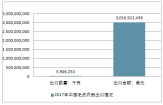 2017年中國(guó)毛皮衣服進(jìn)出口總量906,999千克,進(jìn)出口總金額310,723,626美元。
