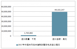 2017年中國未列名未縫制的整張毛皮進出口總量4,817,257千克,進出口總金額136,484,366美元。