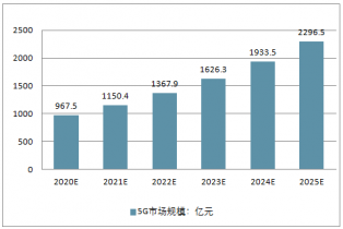 預計到2020年我國5G產(chǎn)業(yè)市場規(guī)模將達到967.5億元,到2025年將達到2296.5億元。