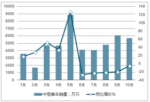 2018年10月中型客車銷量為5673輛,同比下降5.05%。2018年1-10月中型客車銷量為48291輛,同比增長(zhǎng)6.83%。