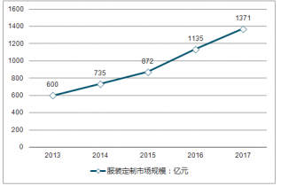 2013-2017年全國(guó)服裝定制市場(chǎng)規(guī)模走勢(shì)