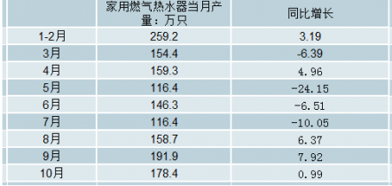 2018年1-10月中國(guó)家用燃?xì)鉄崴骼塾?jì)產(chǎn)量及增長(zhǎng)情況
