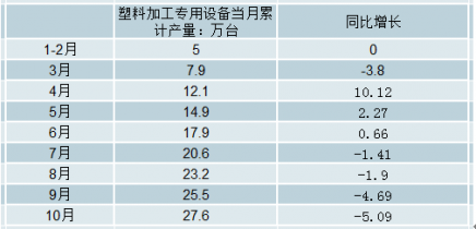 2018年1-10月中國塑料加工專用設備當月累計產量及增長情況