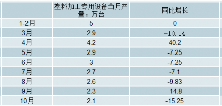 2018年1-10月中國塑料加工專用設備當月產量及增長情況