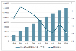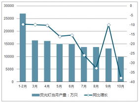 2018年1-10月中國熒光燈產量及增長情況