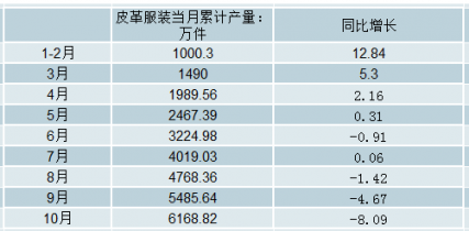 2018年1-10月中國皮革服裝當月累計產(chǎn)量及增長情況